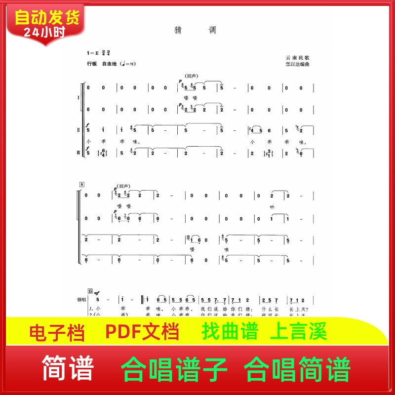 猜调云南民歌张以达编曲中外童声合唱中国简谱合唱谱