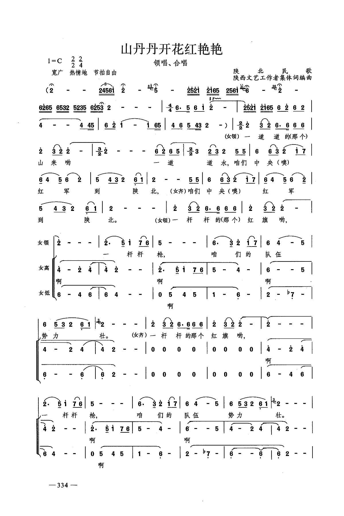 山丹丹开花红艳艳陕北民歌中国合唱歌曲简谱合唱谱高考谱子声乐合唱