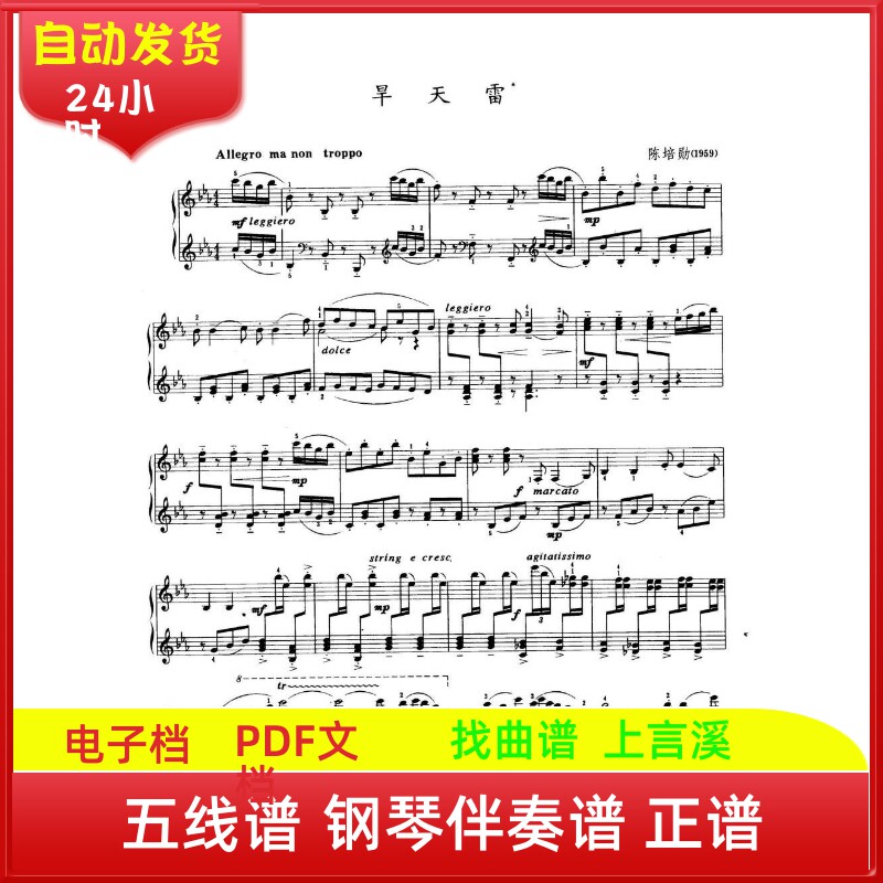 旱天雷降E艺考高考高考五线钢琴伴奏曲谱子声乐考级
