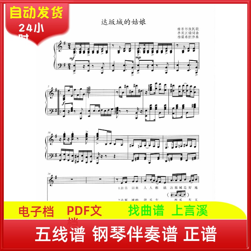 达坂城的姑娘维吾尔族民歌艺考高考五线钢琴伴奏曲谱子声乐考级