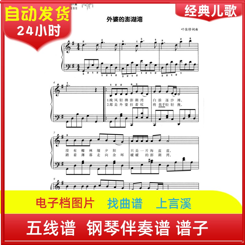 外婆的澎湖湾经典儿歌五线钢琴伴奏曲谱子声乐考级