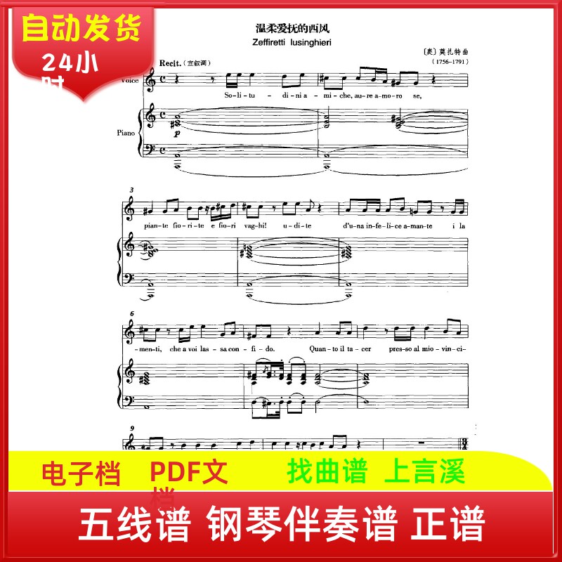 温柔爱抚的西风歌剧《伊多梅纽斯》歌剧花腔女高音高考五线钢琴伴奏曲谱子声乐考级