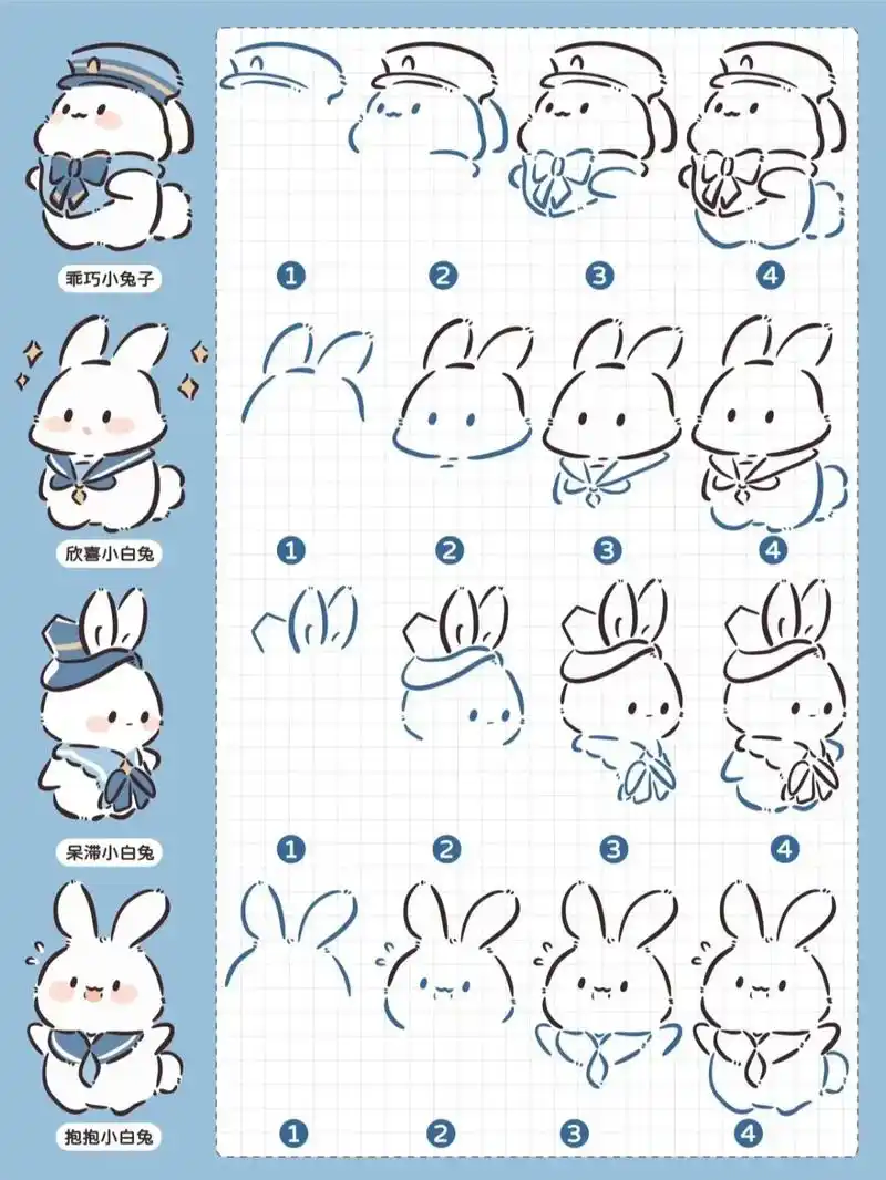 附简笔教程 一起来画画这只活泼可爱的奔跑小兔🐰吧!