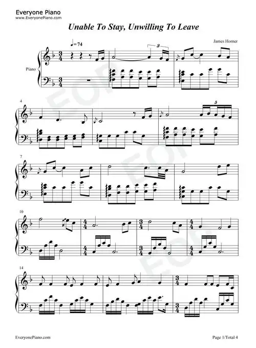 泰坦尼克号 我心永恒 长笛与钢琴 总 分 编号155 电子版乐谱