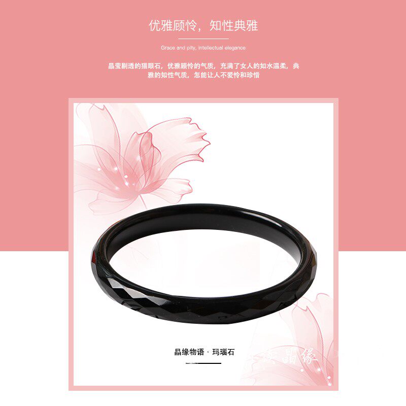 正品黑玛瑙手镯女款 细条玉镯窄条 细玉镯子水晶饰品细手镯黑玉镯