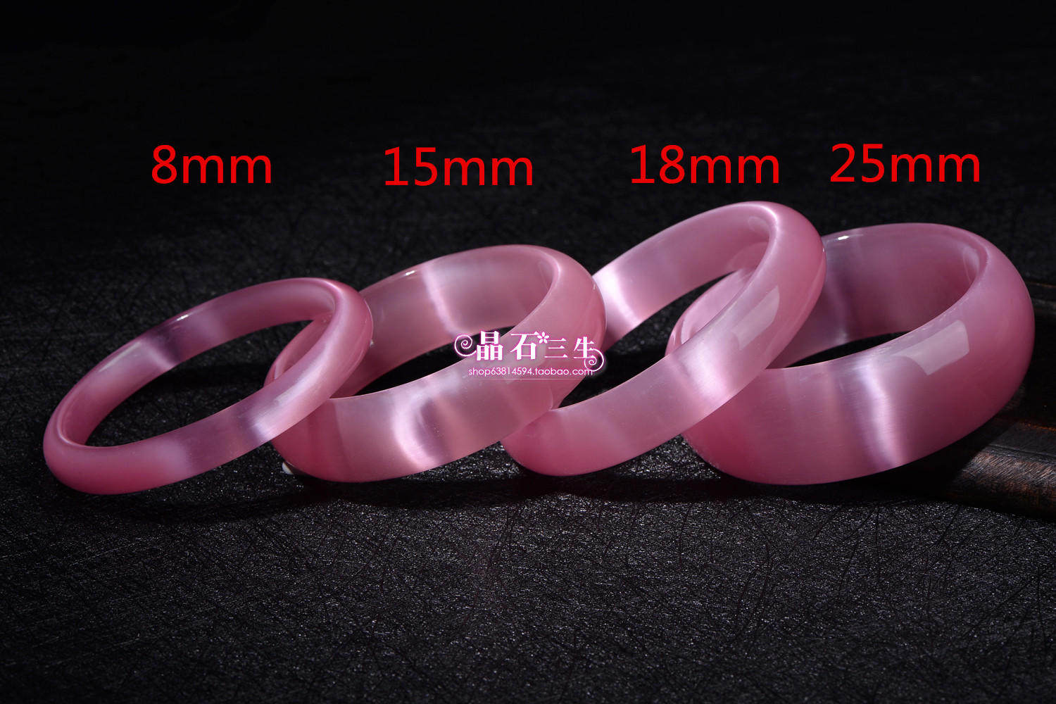 包邮 天然水晶手镯 猫眼石手镯 粉红色四种宽度 时尚 韩版