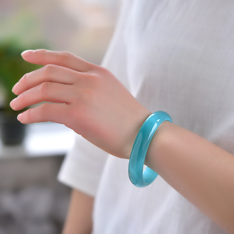 韩版正品细款湖水蓝猫眼石手镯时尚水晶镯饰品女猫眼效应明显天然