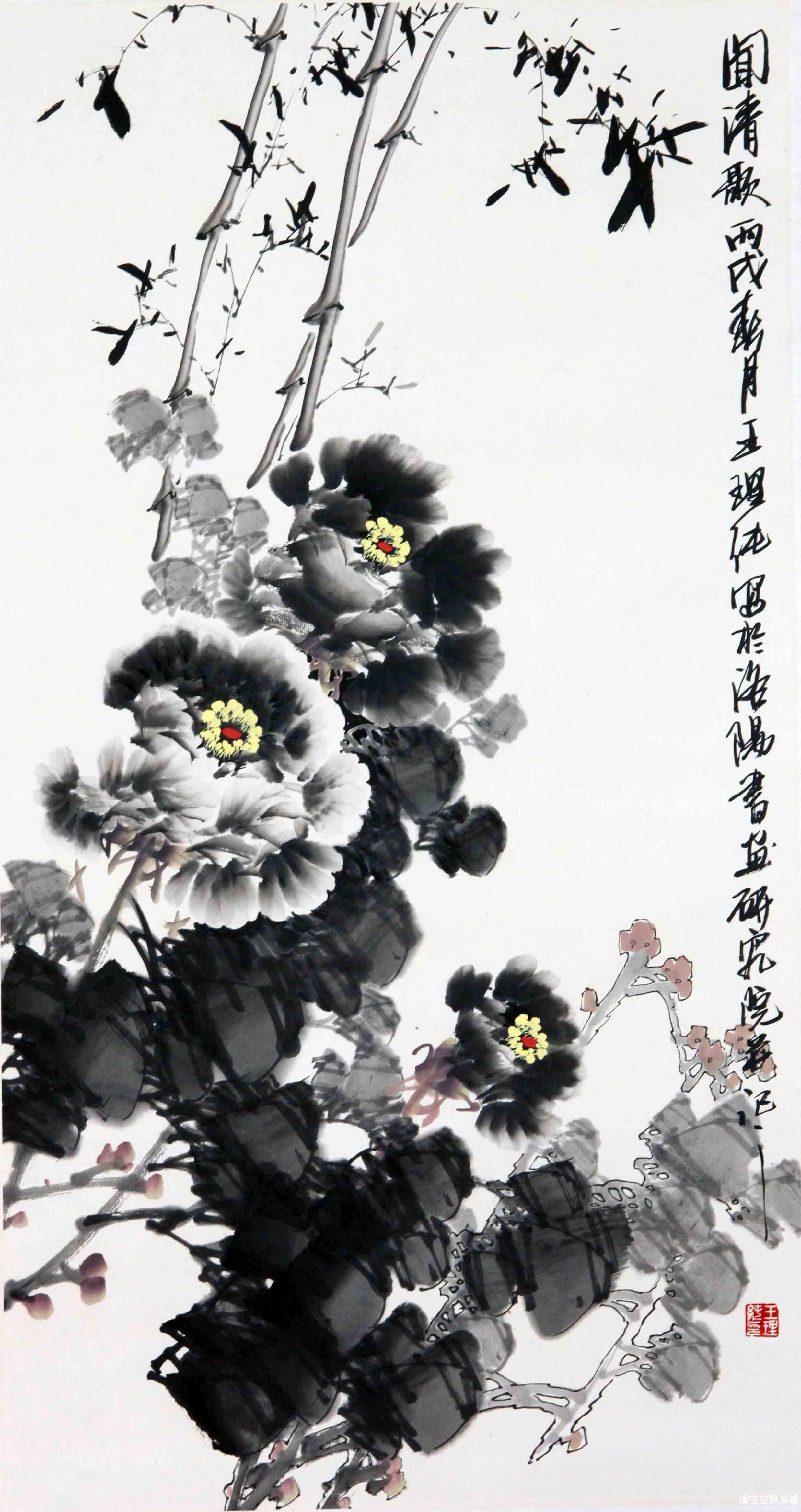牡丹是章龠中最擅长写意的花卉之一,他的大写意牡丹所用颜料和笔墨也