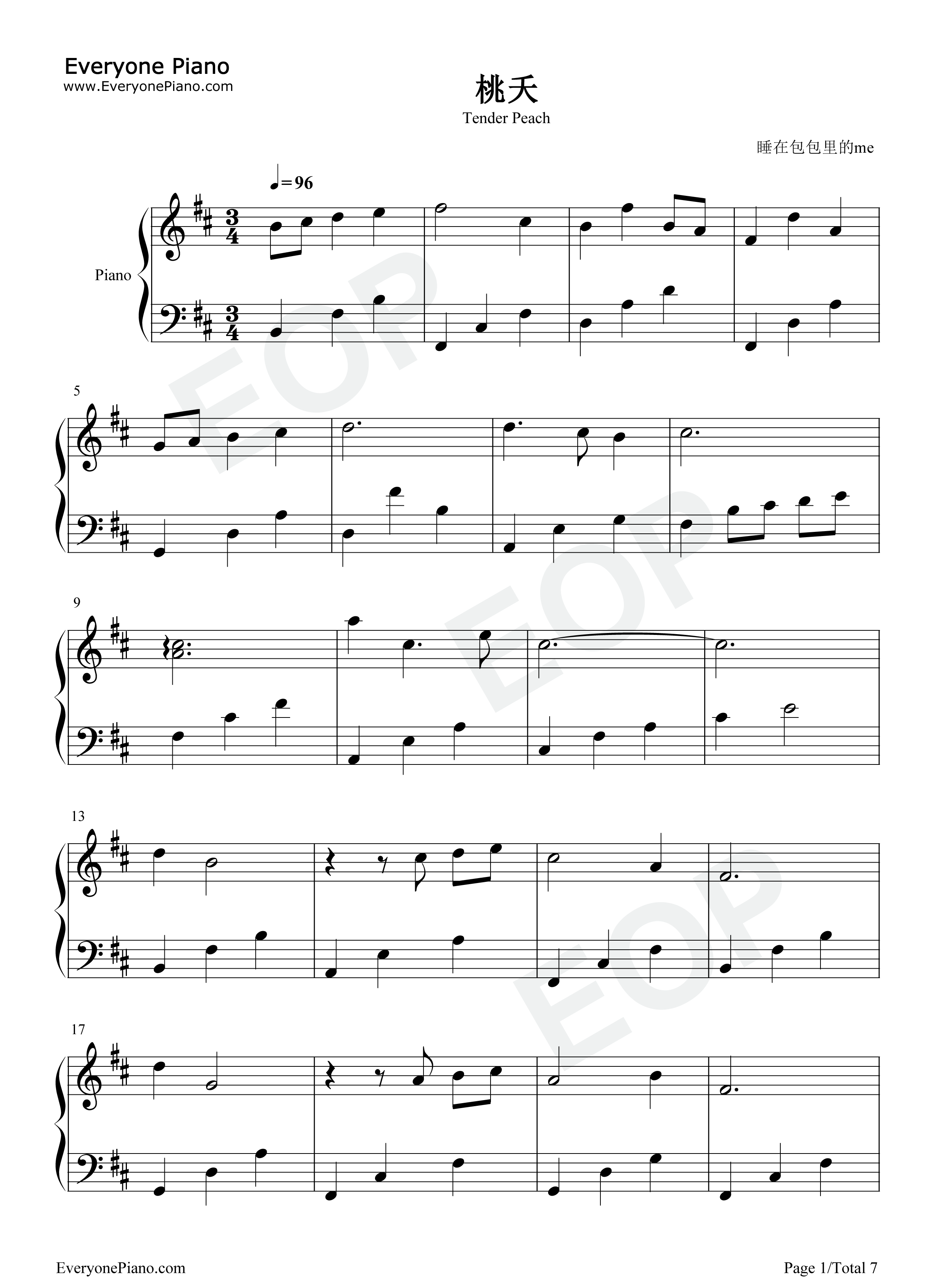 桃夭钢琴谱双笙c调钢琴弹唱五线谱