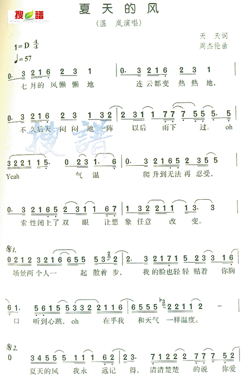夏天的风_歌谱简谱_哆来咪123曲谱网