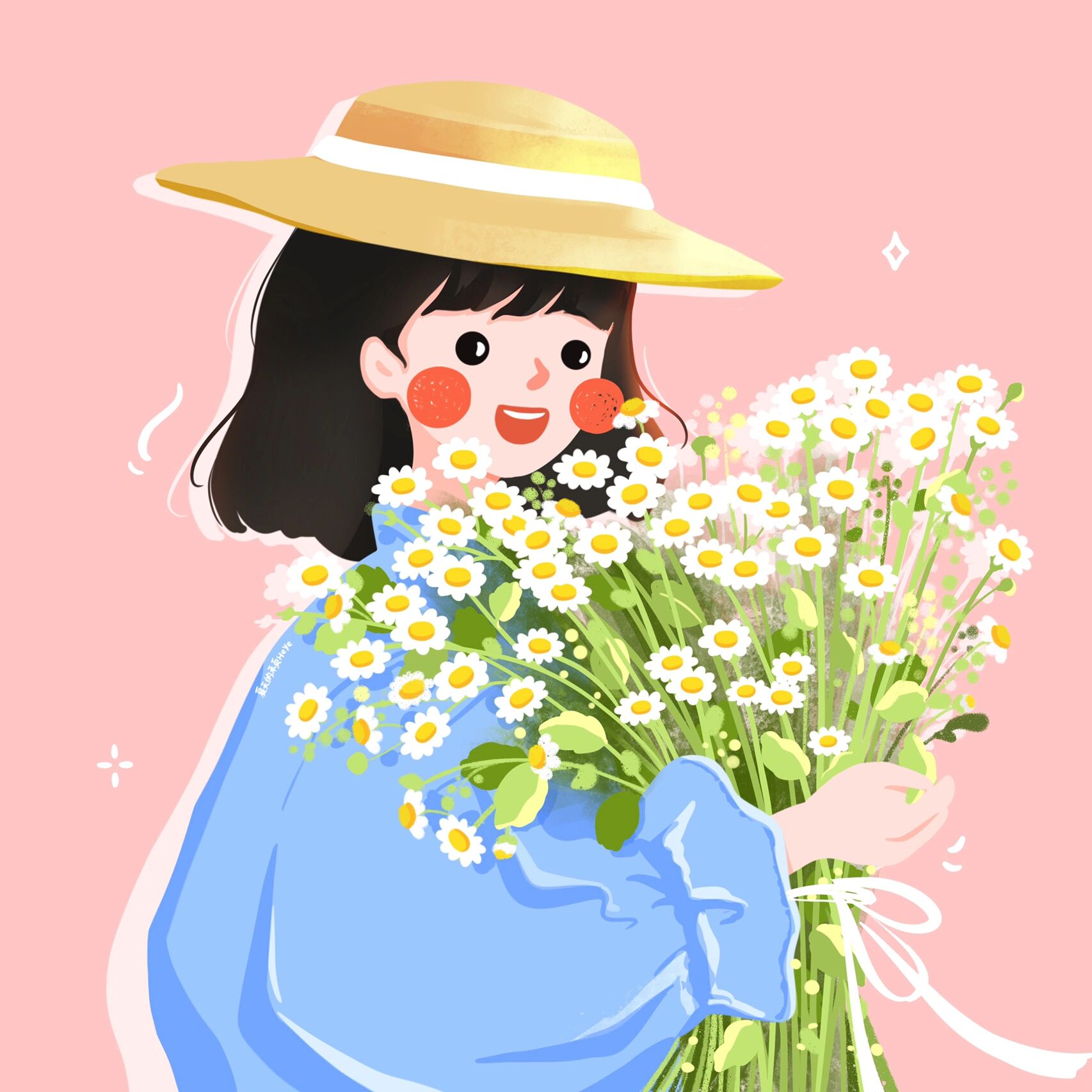 插画头像 | 一枚可爱的雏菊花儿女孩 粉粉的,甜美梦想~ 背景多种配色