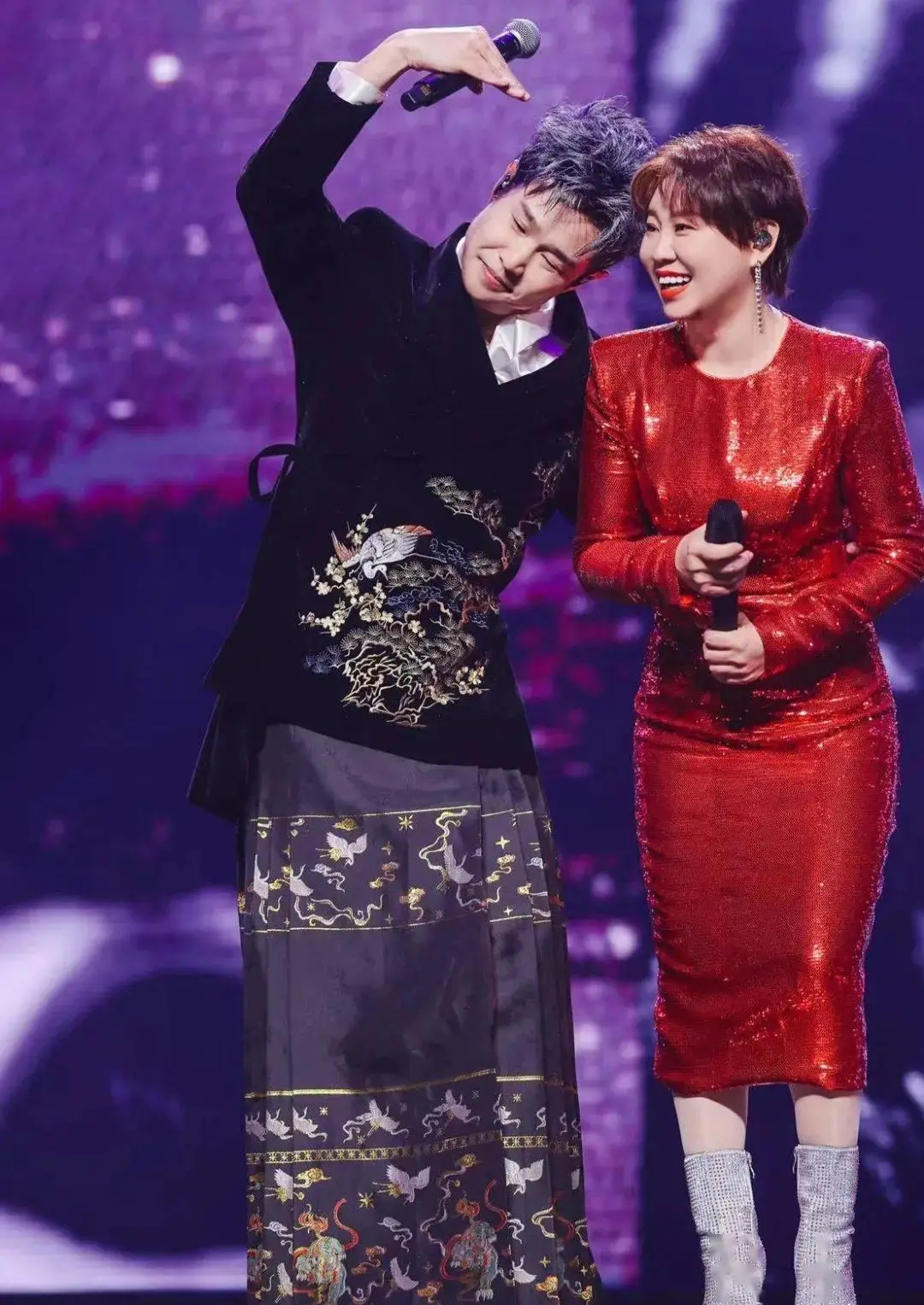 "快上来吧",两人的互动惹得全场起哄,何炅不禁表示不愧是剧中的男朋友