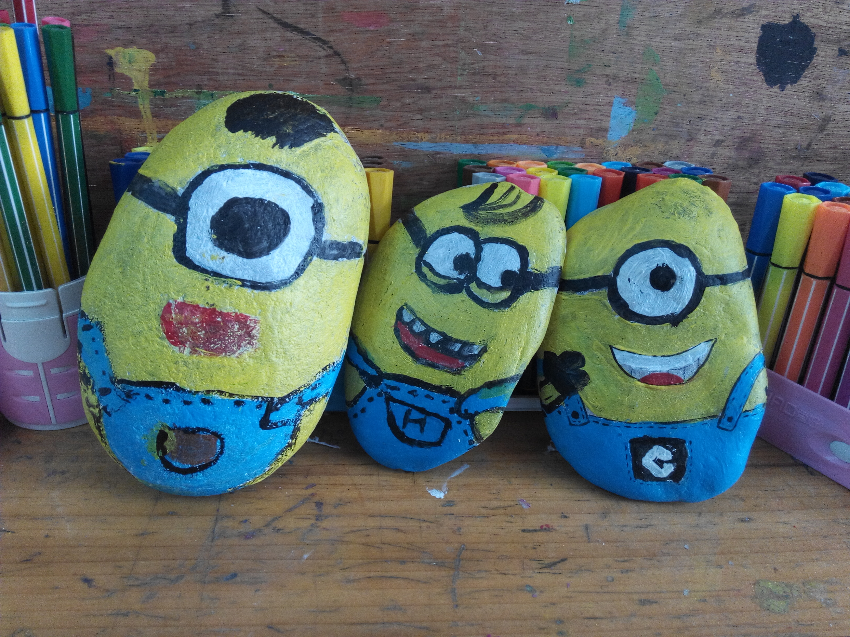 开营的第一节课就是石头画,选择了孩子们很喜欢的卡通形象——小黄人