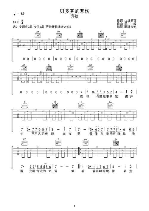 别知己 吉他谱