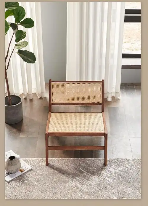 现代简约家用藤椅靠背椅ins风藤编单人小沙发椅客厅新中式休闲椅