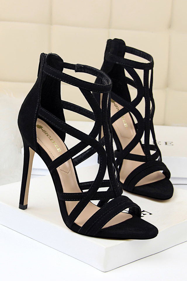 韩版后拉链交叉绑带尖头罗马高跟鞋女21春夏新款细跟宴会礼服单鞋黑色