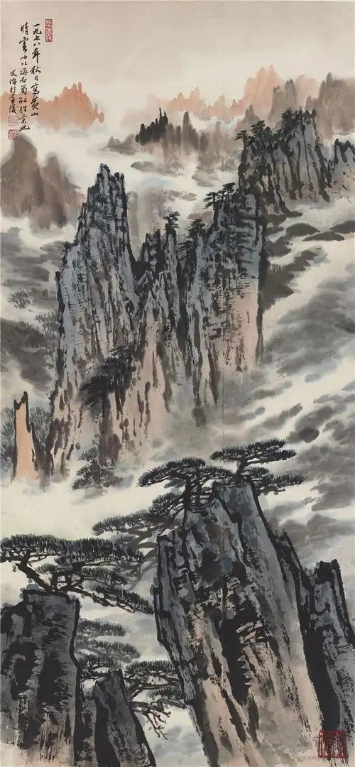 亚明 宋文治 魏紫熙 《黄山松云》65cm×45cm 1978年 纸本水墨设色.