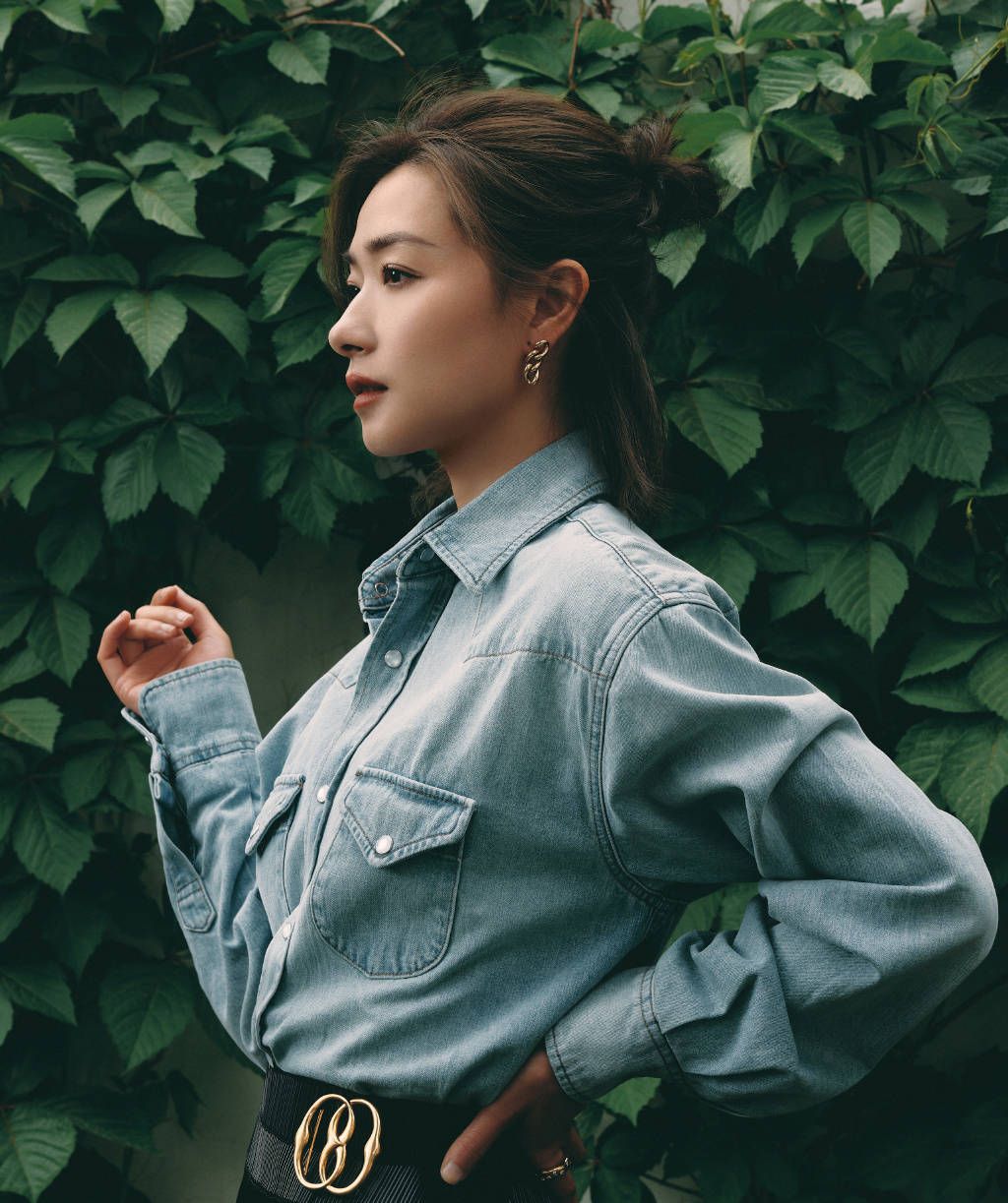 短发是万茜的标志性发型,这样的小卷发让她在帅气中释放自己独特的