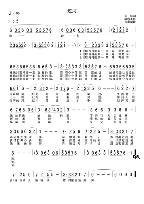 过河_简谱_歌谱_曲谱_吉他谱_五线谱