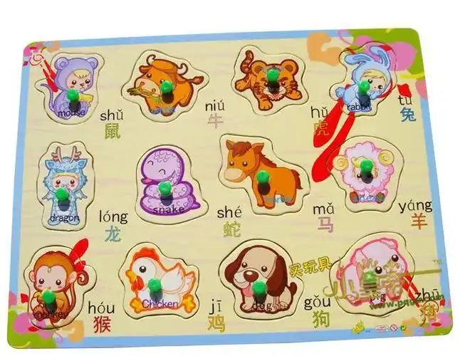 【木制拼图/木制拼板/益智玩具/生肖玩具/学习十二生肖/传统玩具图片