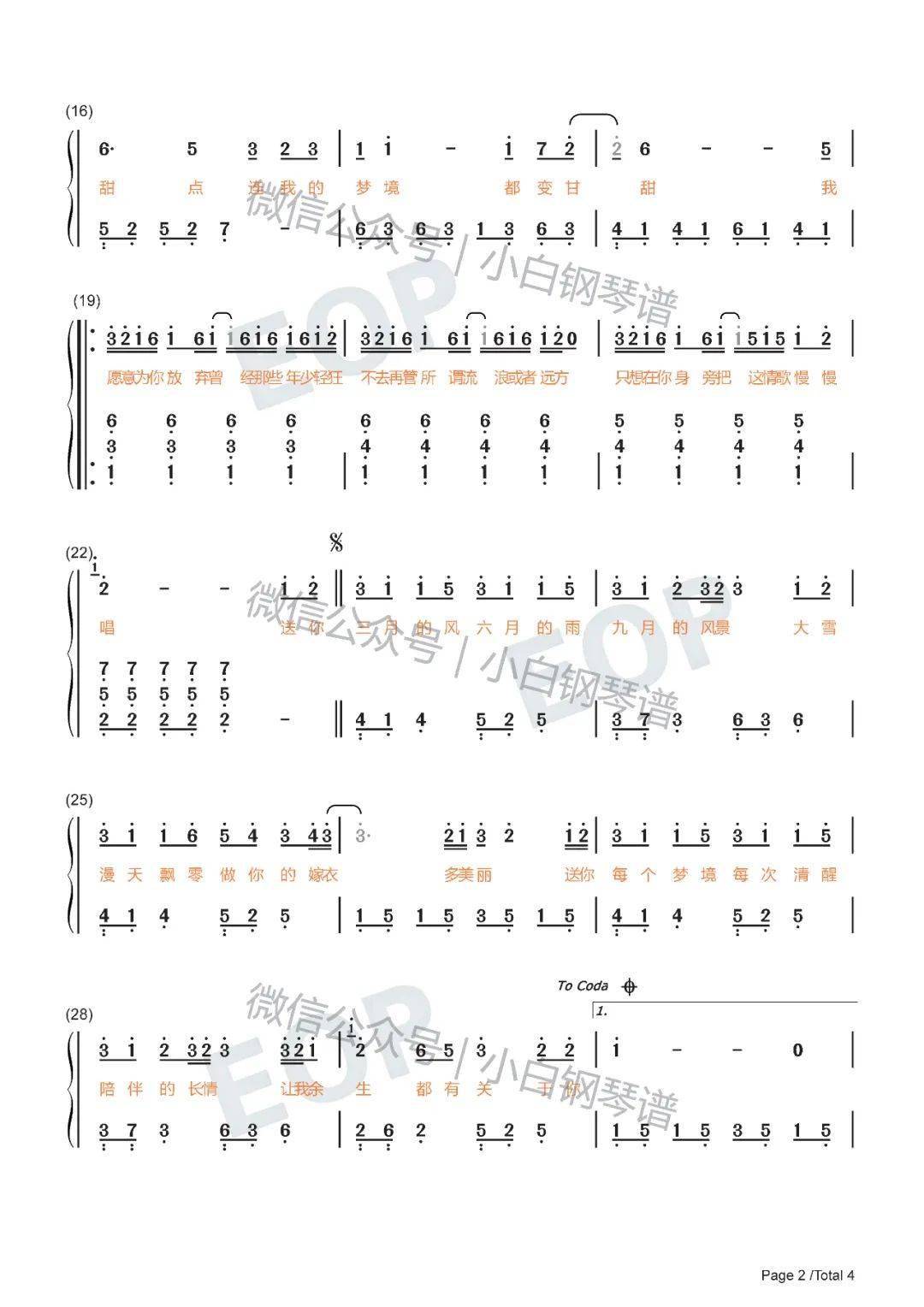 四季予你-送你三月的风六月的雨九月的风景-抖音热歌双手简谱预览1