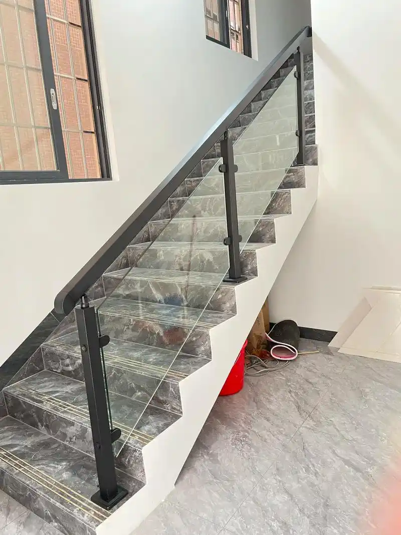 黑色磨砂高级感楼梯扶手玻璃免打孔
