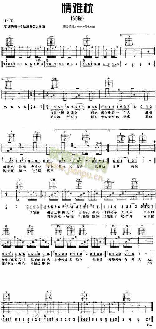 情难枕_情难枕简谱_情难枕吉他谱_钢琴谱-查字典简谱网