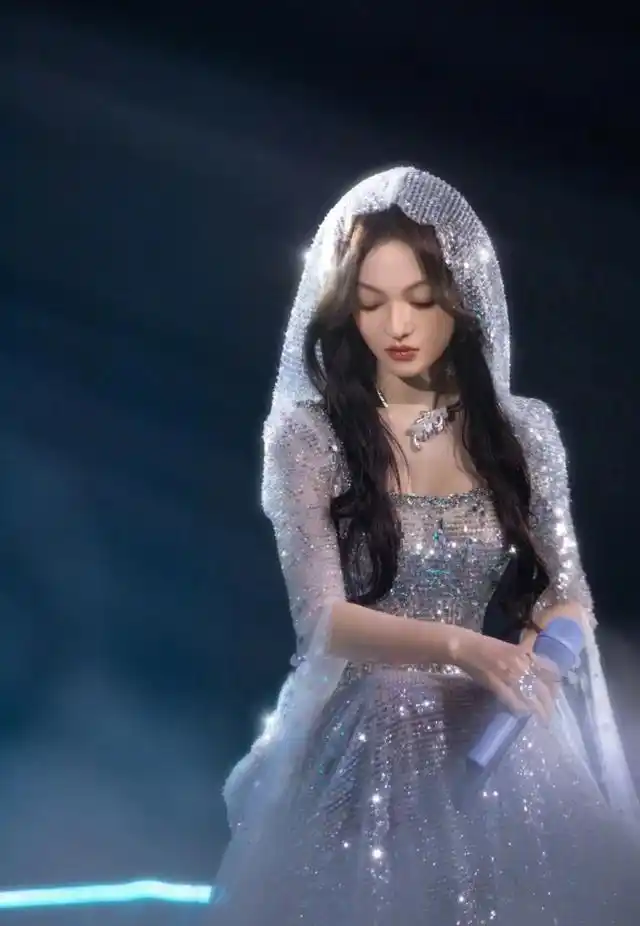 张韶涵舞台造型好美啊银色亮片裙配头纱优雅公主范十足