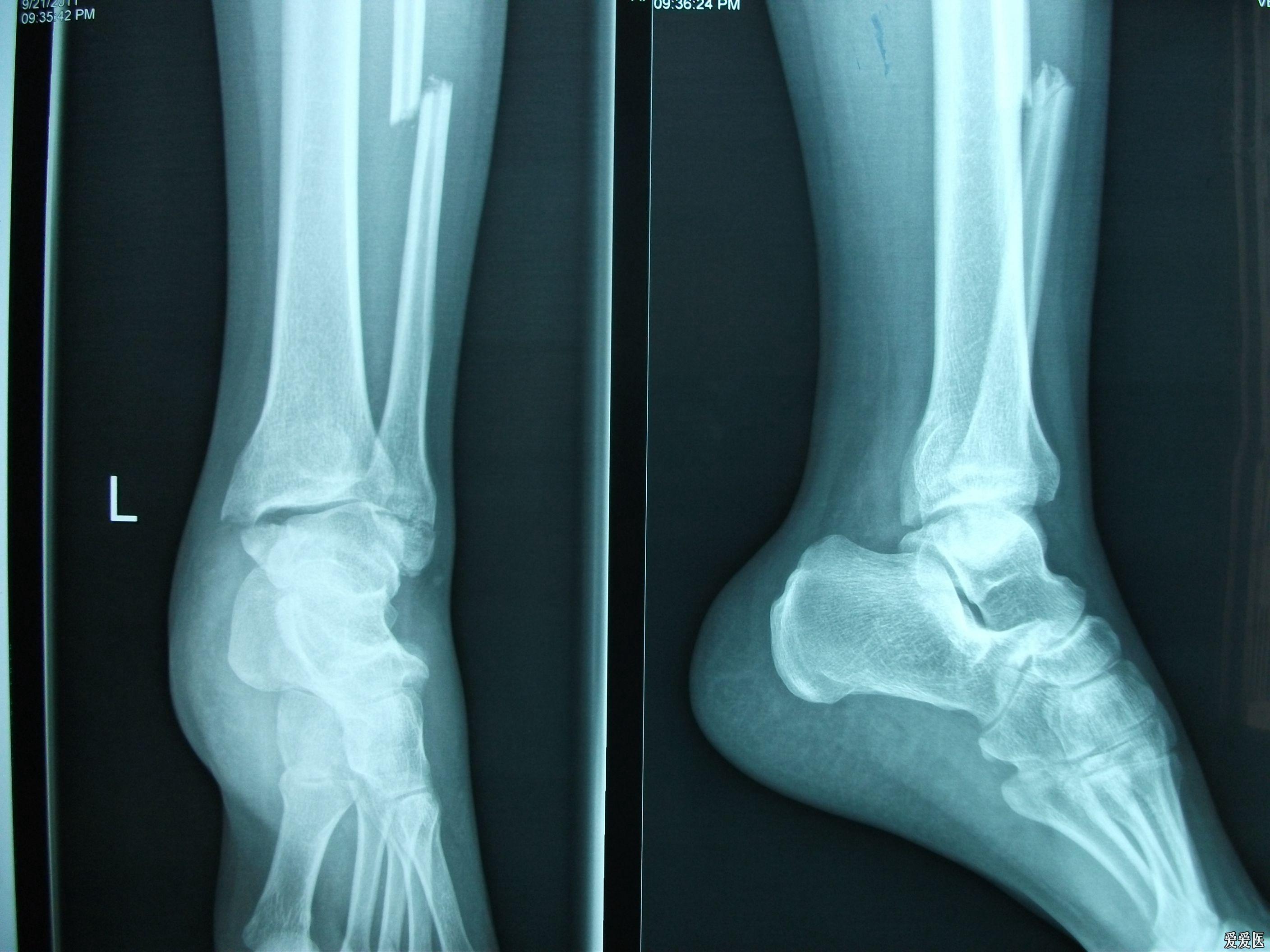 右脚踝扭伤,腓骨骨折,关节移位.请看x光片,谢谢.