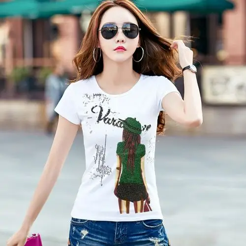 天鹅字母亮片短袖t恤打底衫女显瘦上衣