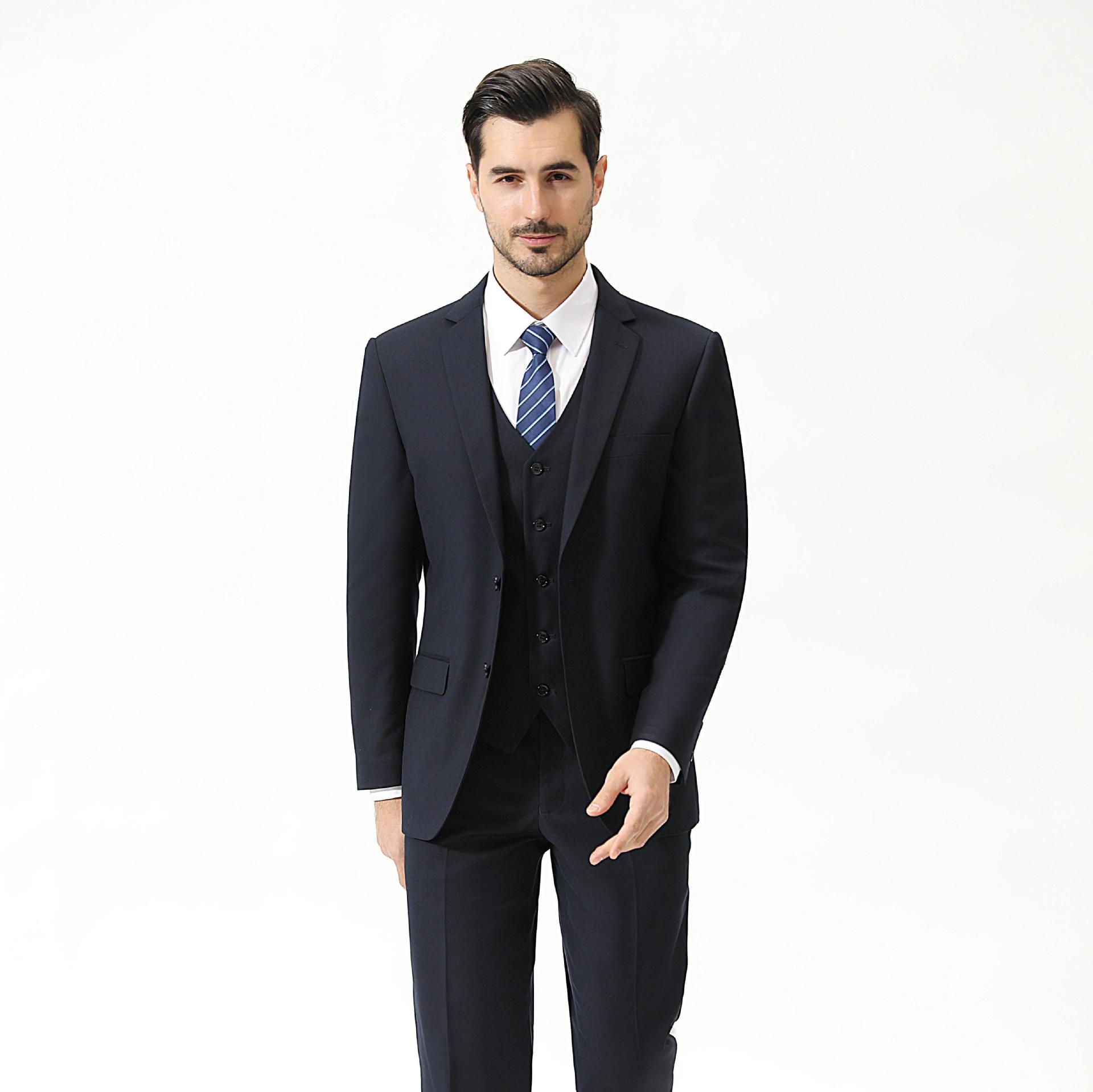 西装结婚商务三件套男男士时尚礼服休闲春秋纯色新款正装西服套装