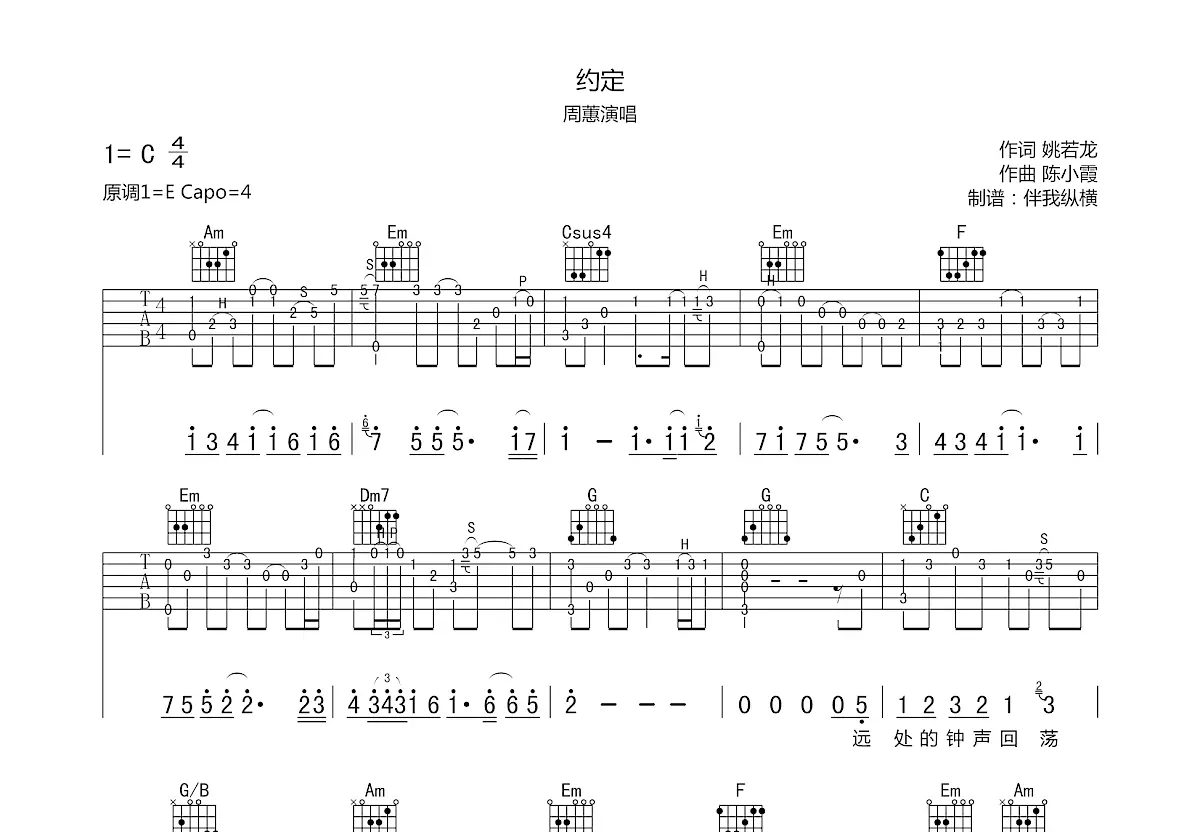 约定吉他谱_周惠c调指弹_伴我纵横up - 吉他世界