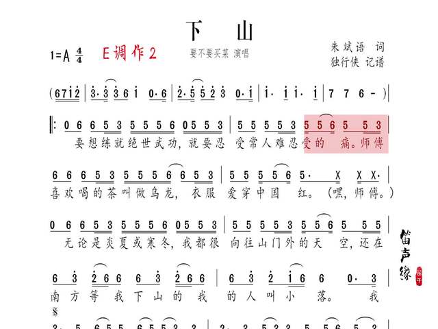 下山简谱-要不要买菜演唱-独行侠曲谱-简谱网