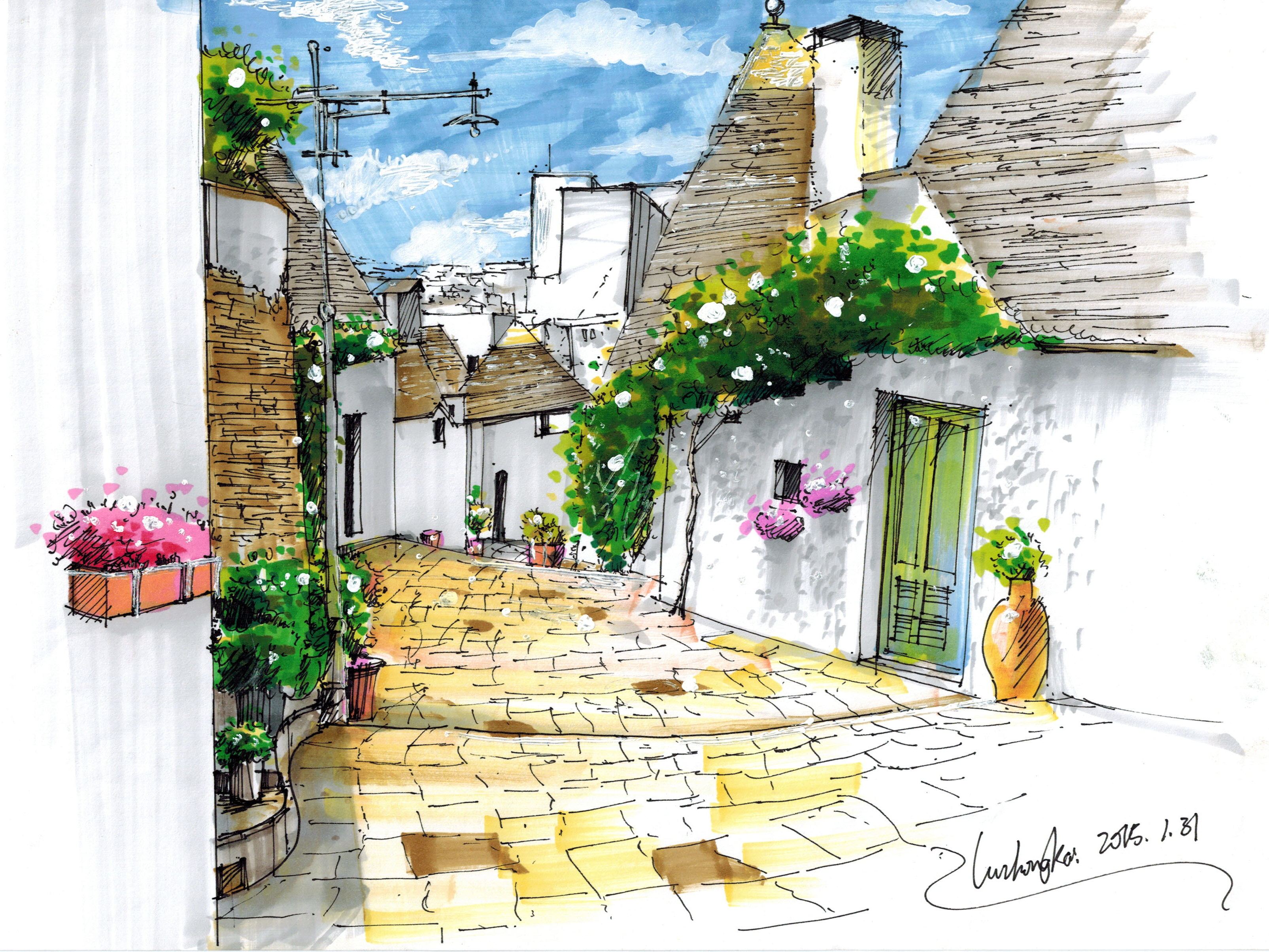 画师azhimova_anastasia插画作品 马克笔场景速写临摹 绘画参考