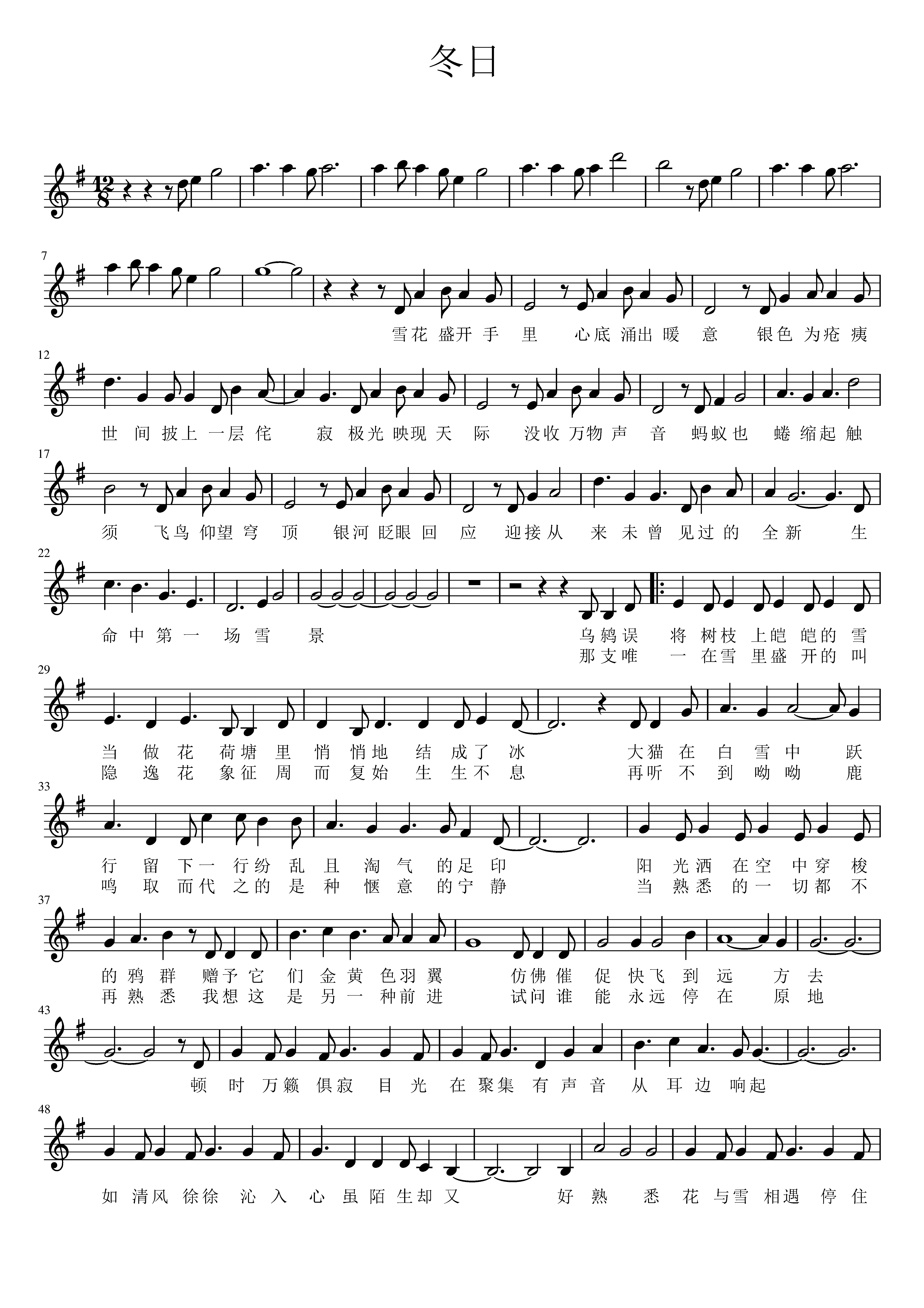 冬日-鞠婧祎和snh48-钢琴谱文件(五线谱,双手简谱,数字谱,midi,pdf)