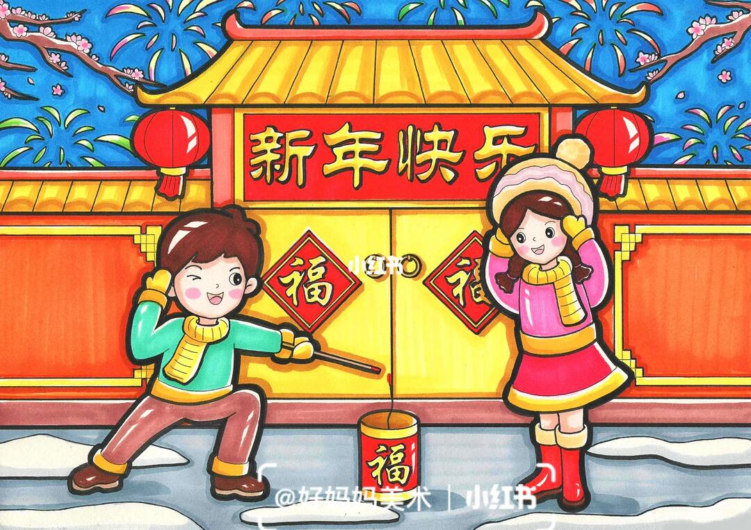 儿童画新年新年主题儿童画,画起来圈传统上的农历新年以下是出国留学