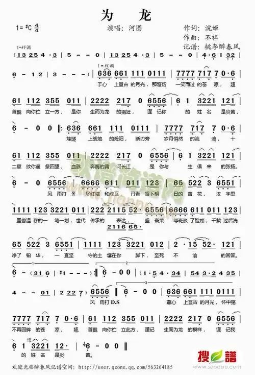 为龙_歌谱简谱_哆来咪123曲谱网