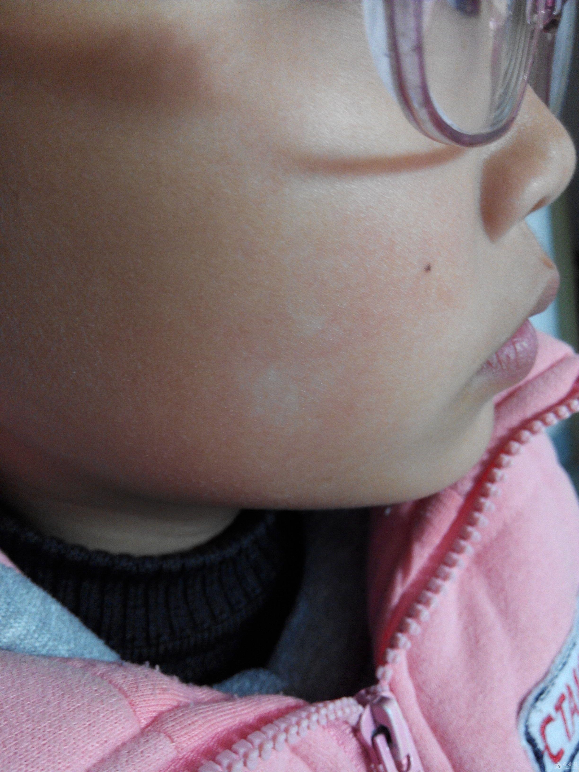 问:八岁女孩脸上出现的白点,是白癜风吗?