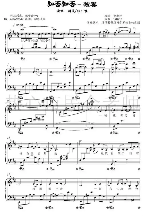 知否知否钢琴谱-胡夏/郁可唯-金老师独奏版1902103