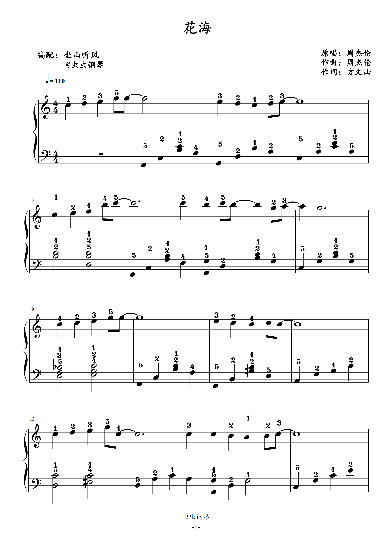 花海- 周杰伦【c调初级】钢琴谱-虫虫钢琴