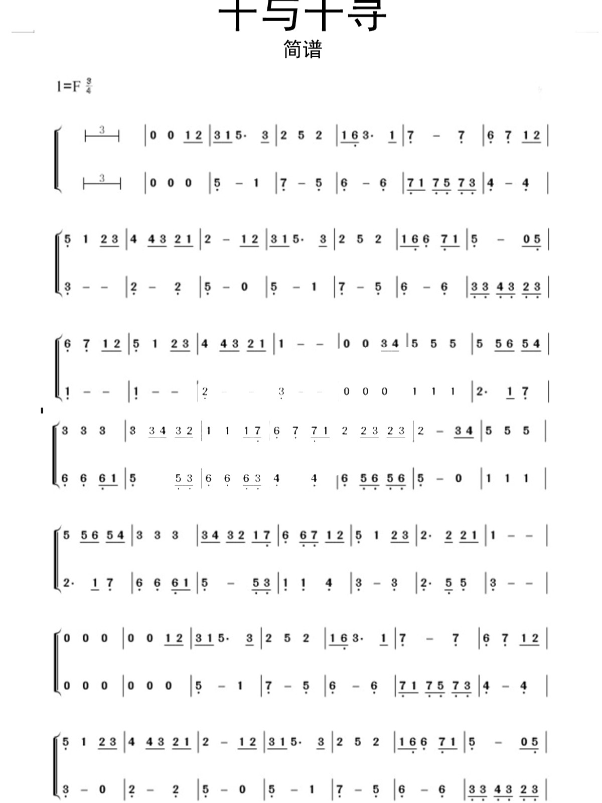 钢琴谱 #苍强曲谱 #千与千寻#宫崎骏#五线谱 - 抖音