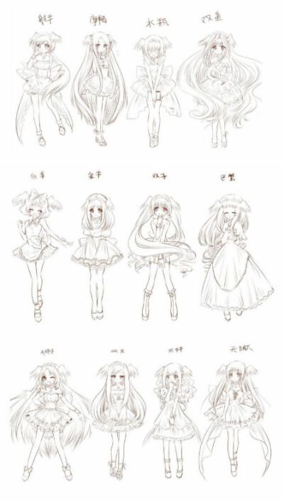 q版人物简笔画女孩十二星座公主