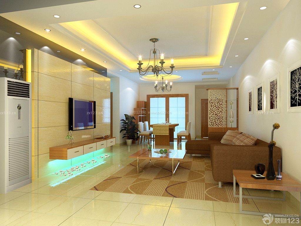 欧式室内装潢时尚客厅天花板吊顶装修效果图