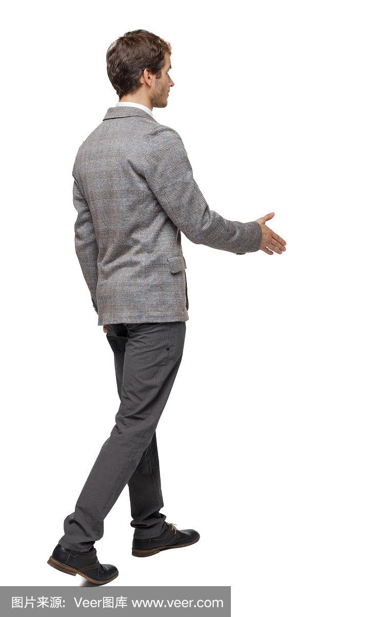 一个步行的商人伸出手来握手的背影.