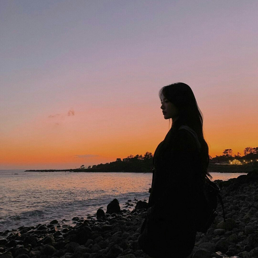 侧脸头像女生日落逆光高清唯美治愈系的日落女生头像侧脸图片