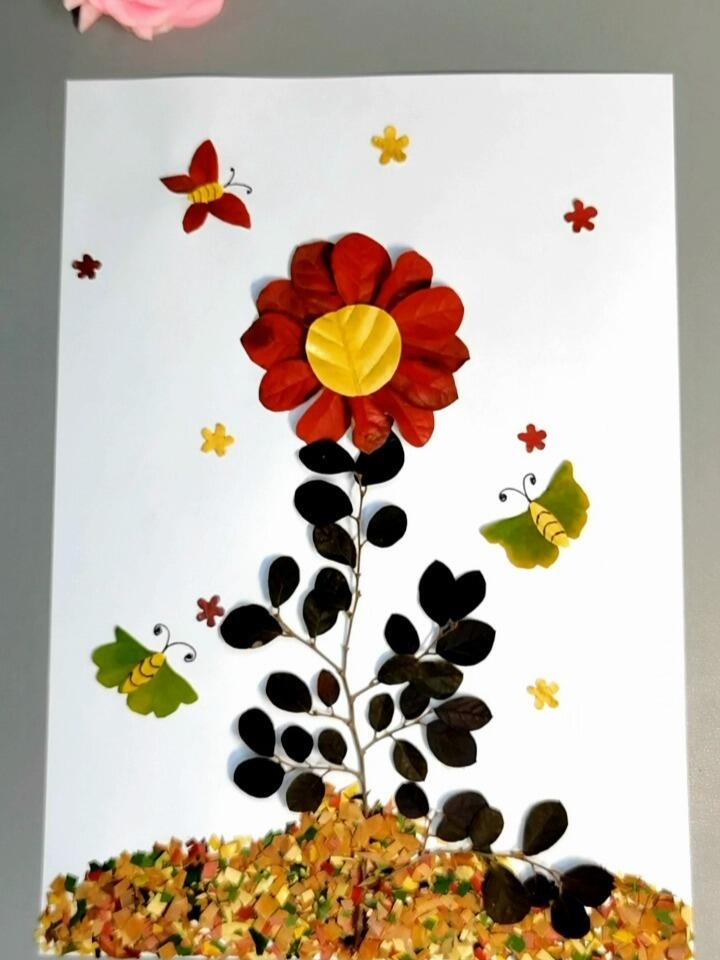 秋天的落叶也可以拼贴好看的花与蝴蝶哦树叶贴画幼儿园手工自然美育