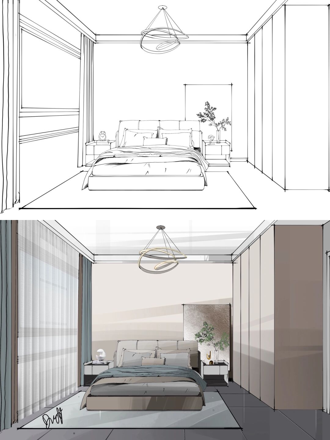 室内设计手绘卧室空间案例步骤图221103