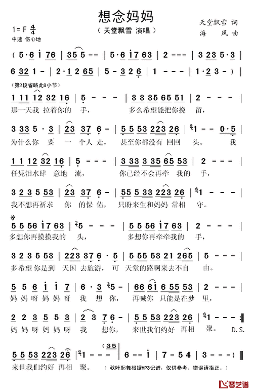 想念妈妈简谱歌词天堂飘雪演唱秋叶起舞记谱