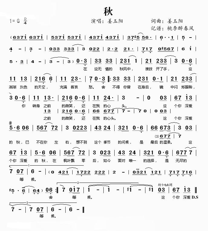 爱情悬崖 (周杰伦)-通俗曲谱- 曲谱 简谱 歌谱 琴谱 总谱 音乐教程