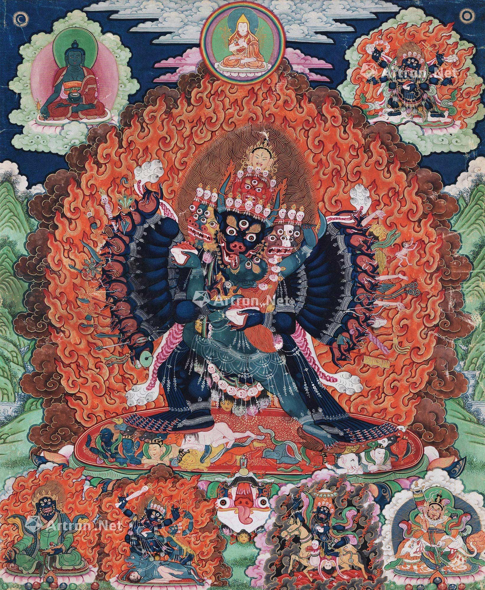 506418世纪大威德金刚唐卡棉布矿物胶彩